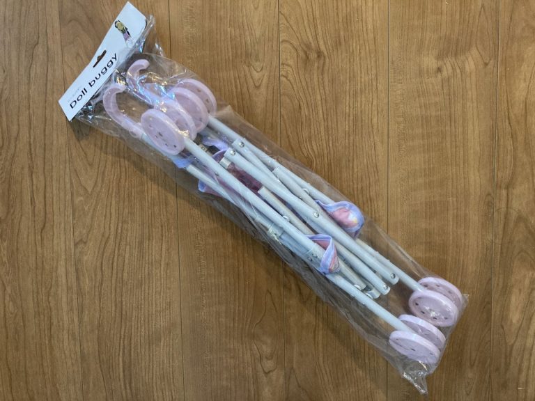 先日娘と3COINSで買い物をしていたら、「ベビーカーが売ってるよ」といい突然娘がかけ出していきました。 「まさかベビーカーなんて売ってないでしょ」と思って見てみると、なるほど、確かに人形用の小さなベビーカー『ドールバギ…
